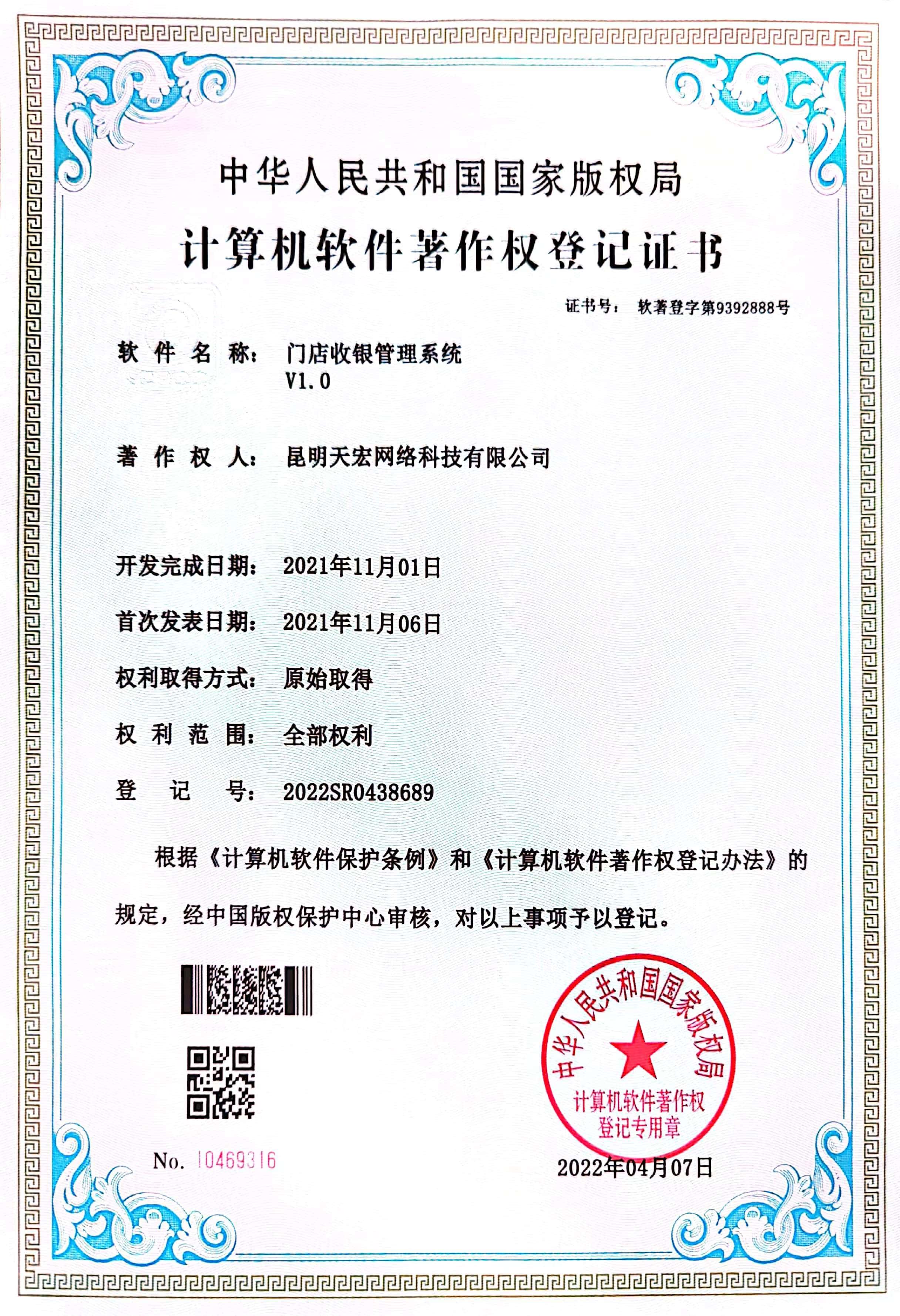 天宏網絡通過不斷的研發創新,現擁有50多項計算機軟著證書,包括多商家點餐系統、門店收銀管理系統、通用OA協同辦公管理系統、智慧商圈運營管理平臺、天宏健康智慧+系統、同城O2O管理系統等。